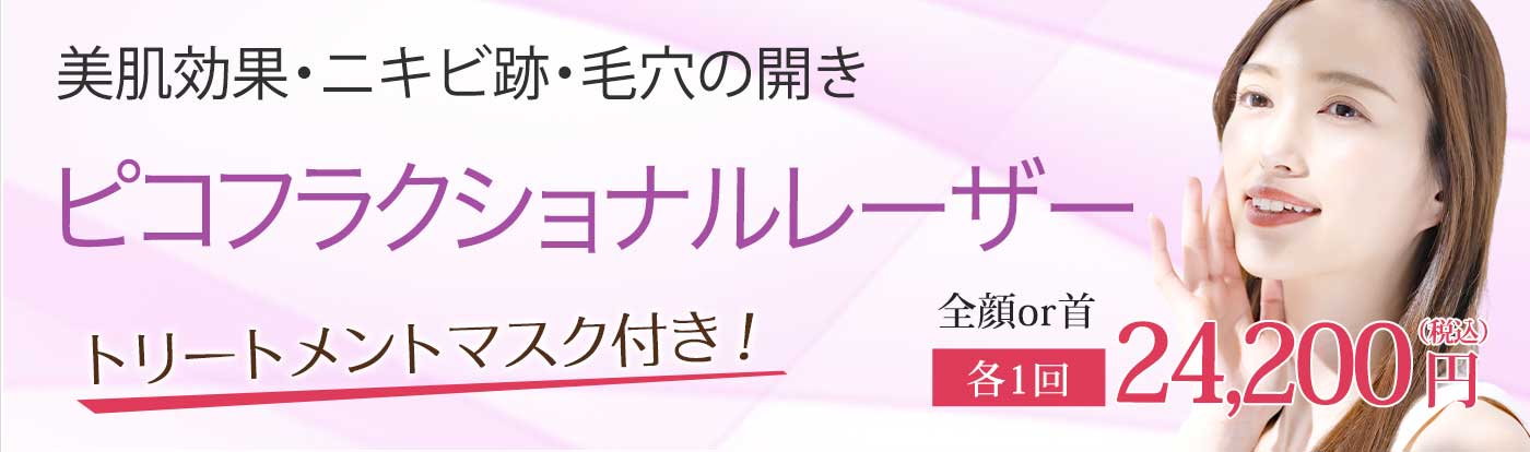 | 全顔 or 首 | 各1回 2パス | 24,200円 | ニキビ跡治療 プラセンセラムマスク付き |