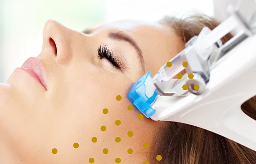 治療は専用の機器を使用し、顔と首にメソセラピー(いわゆる水光注射)を行うことで、肌に有効成分を均一に届けます。