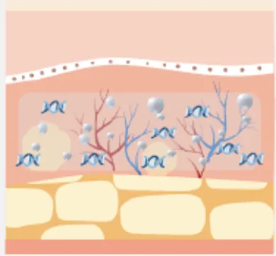 時間の経過とともに、PLLAが分解される過程で、線維芽細胞がコラーゲンの生成を促進します。
