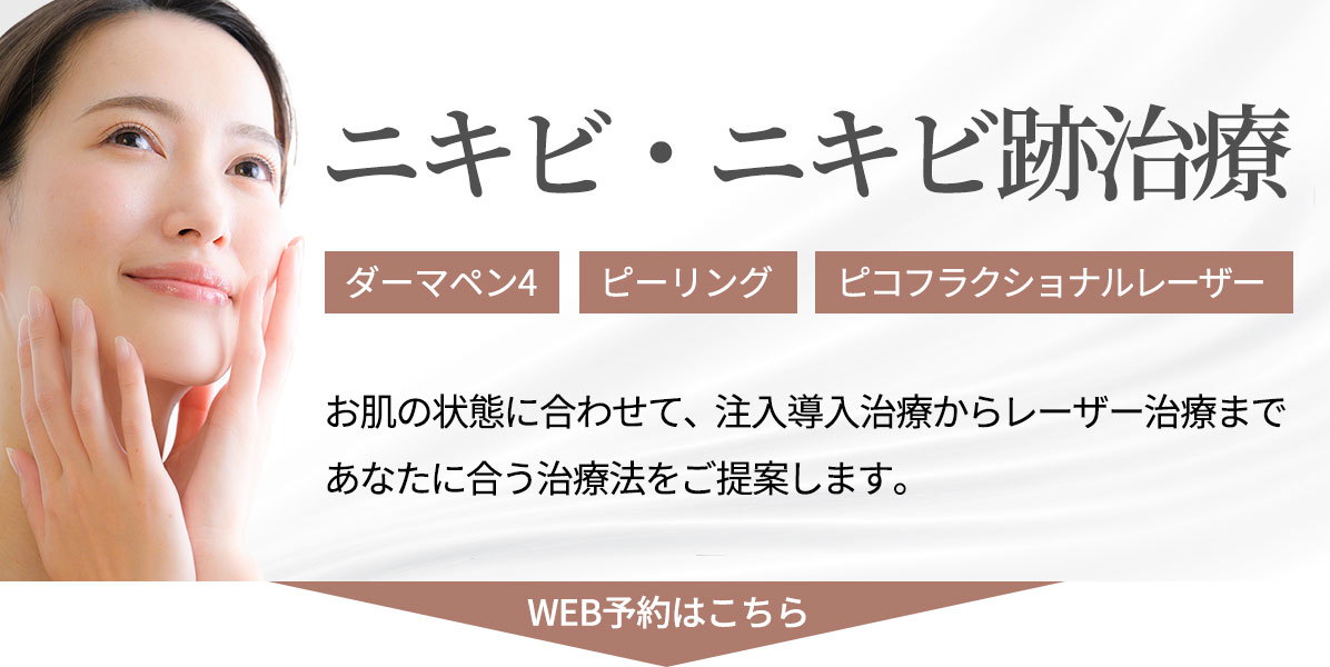 当院では痛みの少ないダーマペン ÜBERやレーザー治療など、お肌の状態に合わせたニキビ、ニキビ跡治療を行っています。