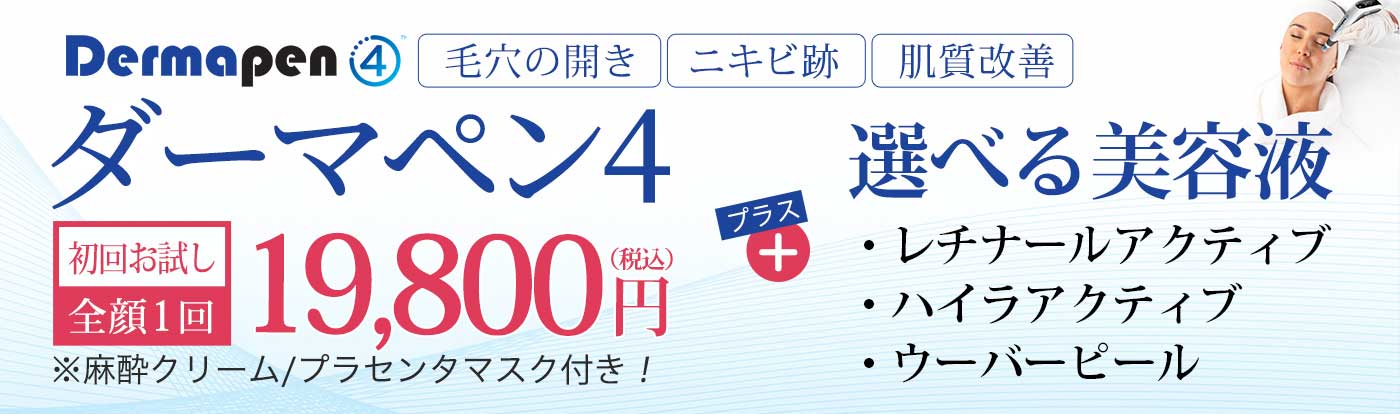 | ダーマペン4 | お試し 全顔1回 | 19,800円 | 麻酔クリームとプラセンセラムマスク付 |