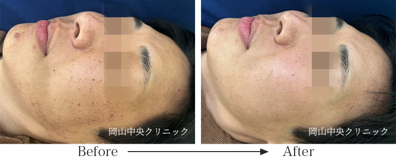 加齢とともに気になる「しみ」。「しみ」は消えないと思っていませんか?「しみ」には老人性色素斑、雀卵斑、肝斑など様々な種類があり、間違ったホームケアなどで悪化させてしまうこともあります。しみの種類、症状や状態に合わせた治療を行うことが大切です。岡山中央クリニックでは、光治療・レーザー治療でお顔全体のコラーゲンを増やしたり、内服で体の内側から治療していく方法、塗り薬など、併用されると相乗効果でより効果が高まる治療など豊富な治療法をご用意しています。